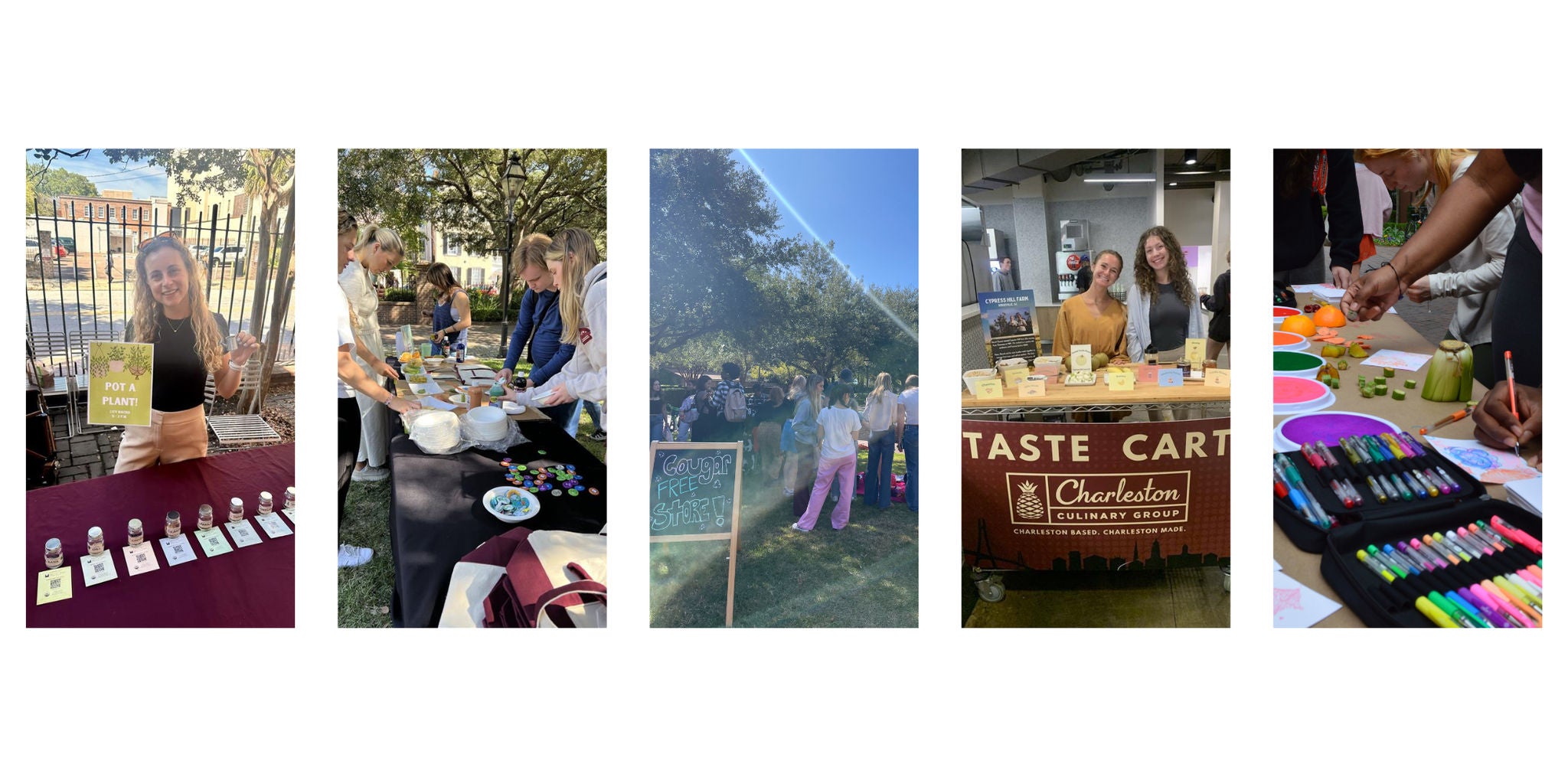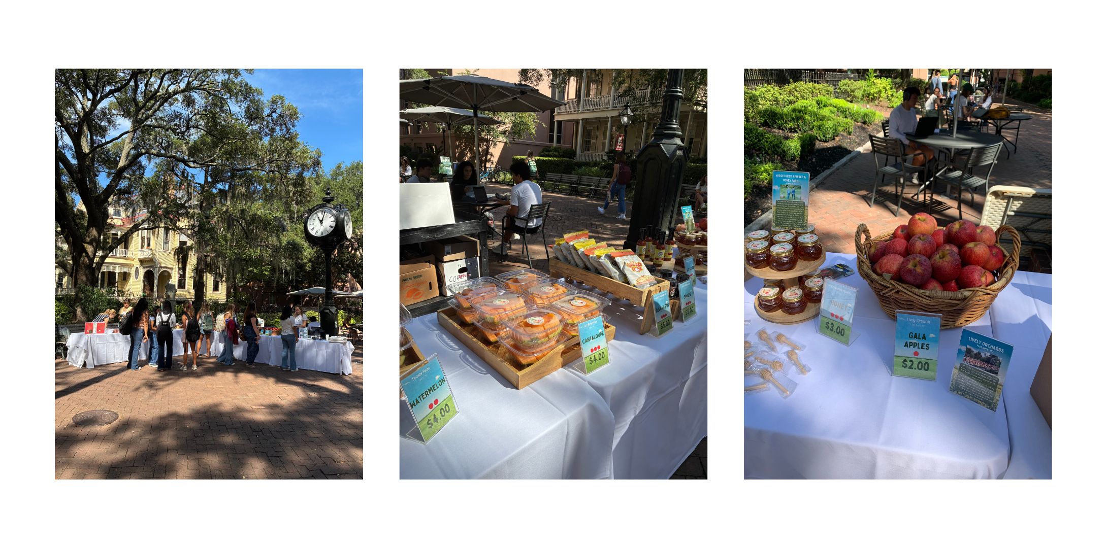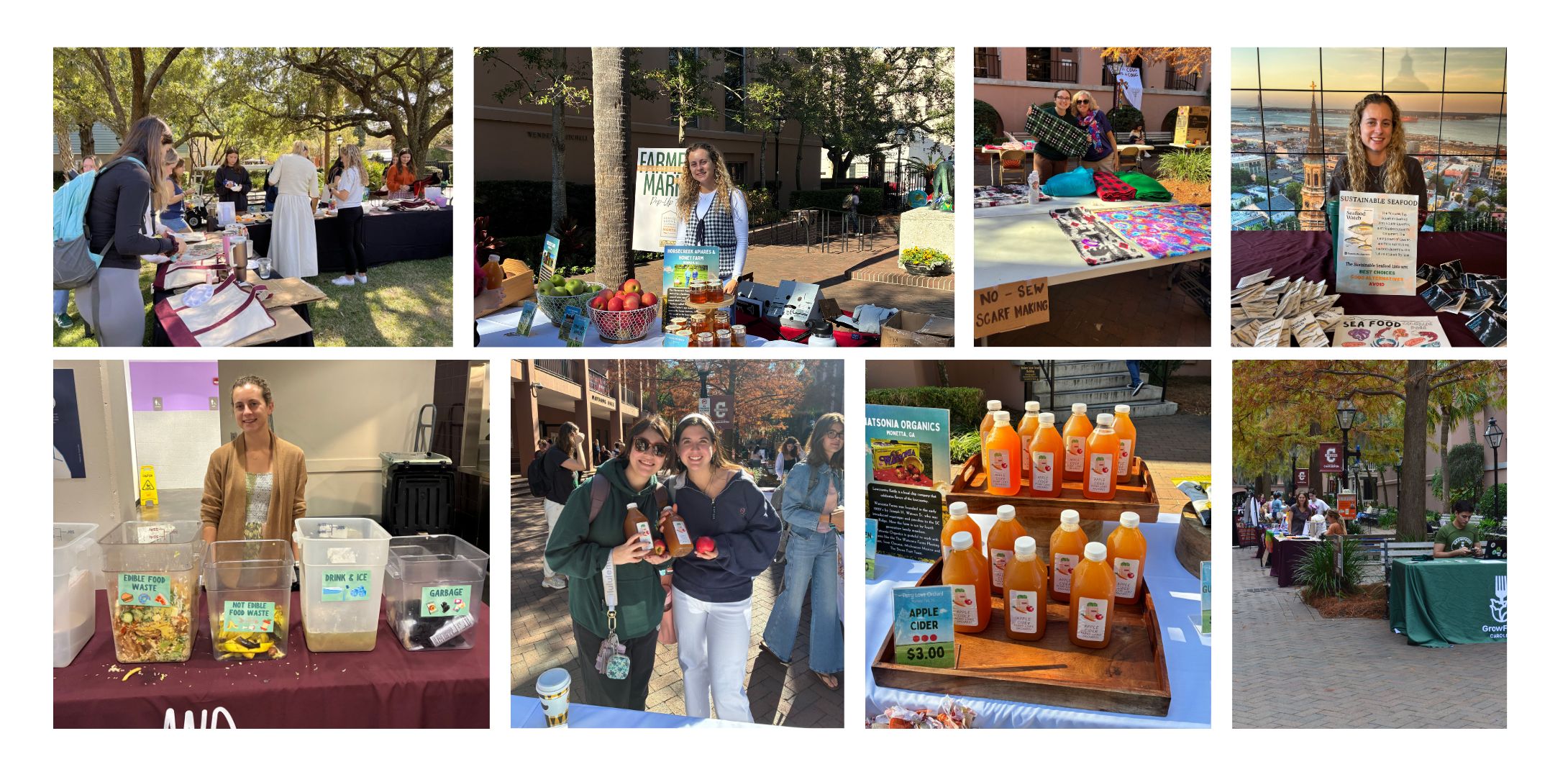 Almost once a month, our sustainability department hosts a farmers market in one of the schools main areas to allow students to purchase fresh local produce and goods meal taps, dining dollars, or card. This helps students discover and engage with local farms and businesses and have access to quality produce at a fraction of the cost. These markets also often collaborate with other student groups to educate and give back to their community such as our gathering for Hunger & Homelessness Awareness Week and Compost Fest.